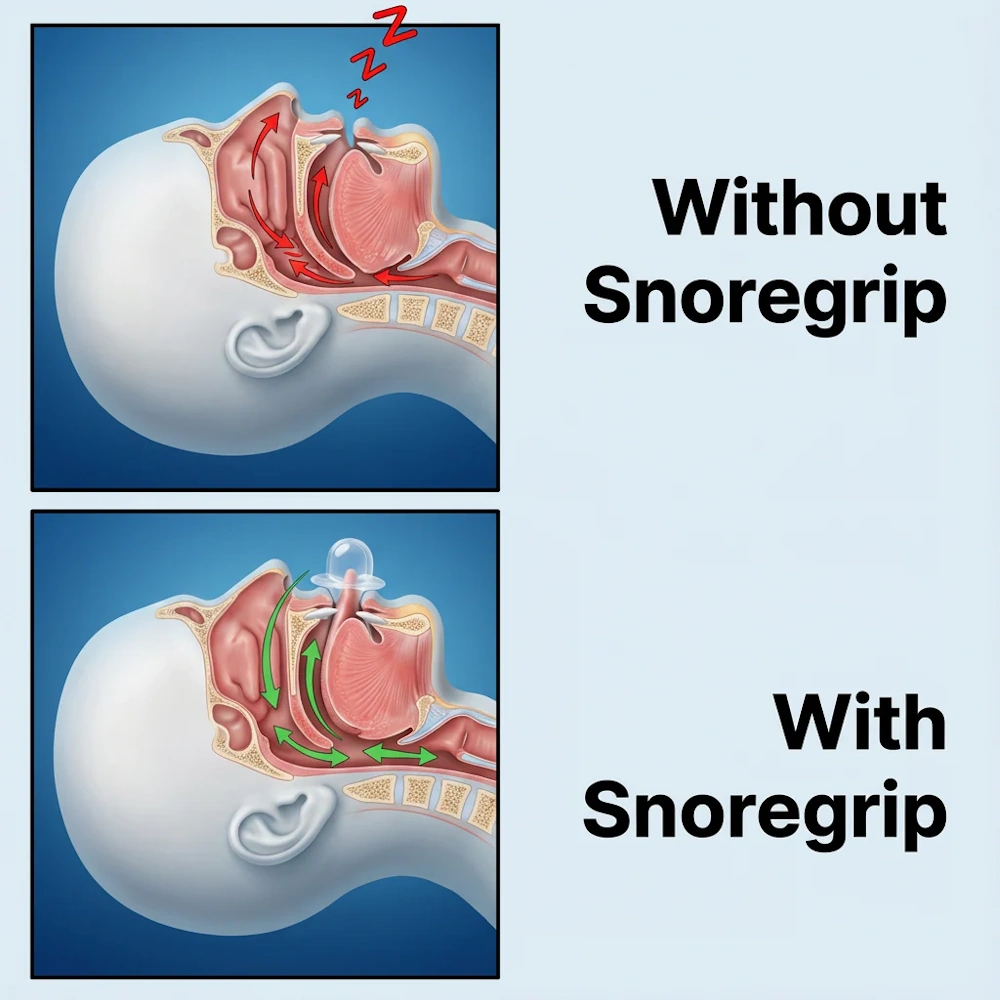 - COMFORTABLE SUCTION TECHNOLOGY - Creates light, adjustable suction to hold the tongue forward without pain, pressure, or breathing restriction.